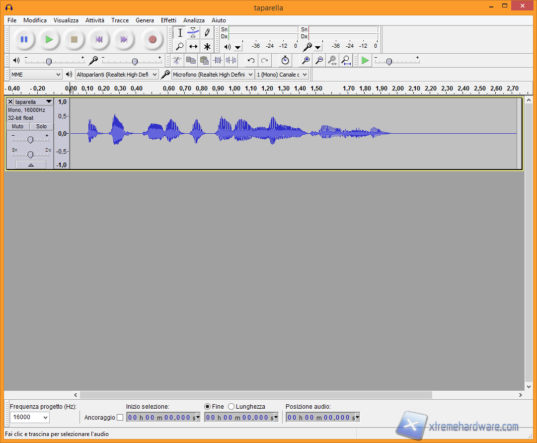 Col secondo metodo utilizzeremo solo Audacity. A differenza del primo, questo metodo non prevede la realizzazione di una frase partendo da un testo scritto, ma la registrazione vera e propria della nostra o di qualsiasi altra voce. Immagino che sarà molto interessante dare un accento un po’ dialettale alla vostra casa, o per realizzare qualcosa di divertente che si discosti dalla solita voce robotica, ma potrete comunque registrare qualsiasi cosa quindi preparate le vostre corde vocali e iniziamo subito.